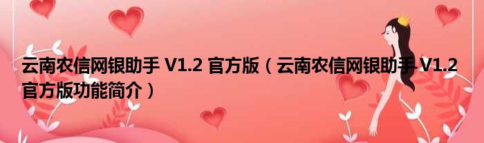 云南农信网银助手 V1.2 官方版(云南农信网银助手 V1.2 官方版功能简介)