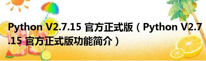 Python V2.7.15 官方正式版(Python V2.7.15 官方正式版功能简介)