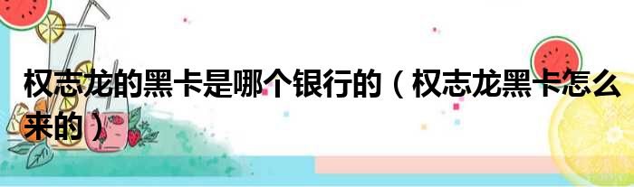 权志龙的黑卡是哪个银行的(权志龙黑卡怎么来的)