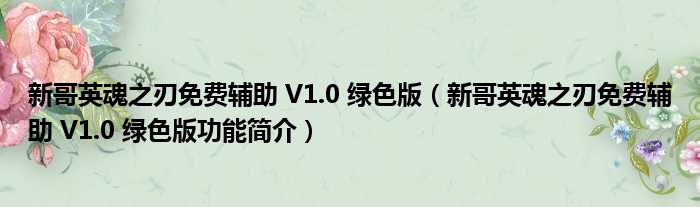 导读 大家好,关于新哥英魂之刃免费辅助 V1 0 绿色版,新哥英魂之刃免费辅助 V1 0 绿色版功能简介这个很多人还不知道,小勒来为大家解答以上的