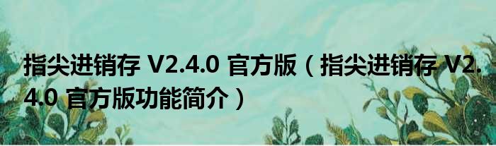 指尖进销存 V2.4.0 官方版(指尖进销存 V2.4.0 官方版功能简介)