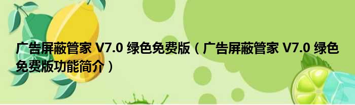 导读 大家好,关于广告屏蔽管家 V7 0 绿色免费版,广告屏蔽管家 V7 0 绿色免费版功能简介这个很多人还不知道,小勒来为大家解答以上的问题,现