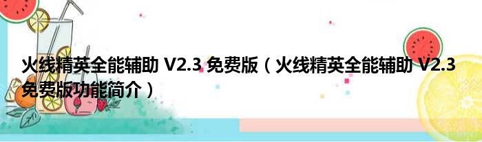 火线精英全能辅助 V2.3 免费版(火线精英全能辅助 V2.3 免费版功能简介)
