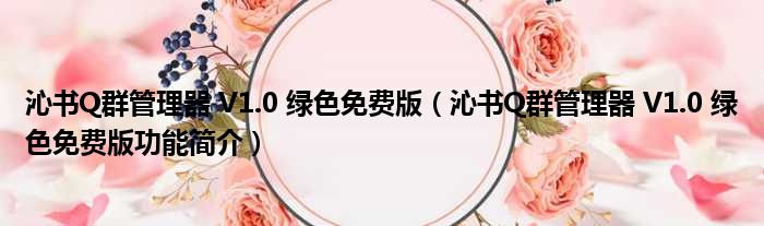 沁书Q群管理器 V1.0 绿色免费版(沁书Q群管理器 V1.0 绿色免费版功能简介)