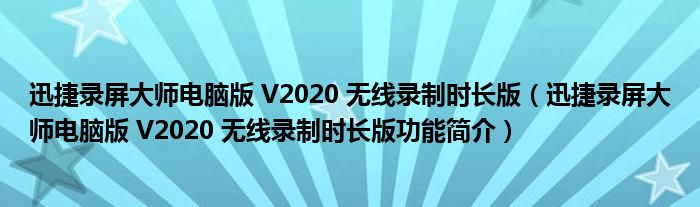 迅捷录屏大师电脑版 V2020 无线录制时长版(迅捷录屏大师电脑版 V2020 无线录制时长版功能简介)