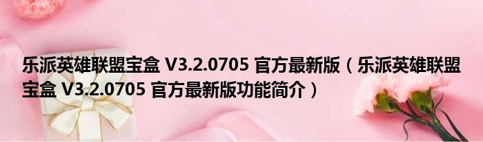 导读 大家好,关于乐派英雄联盟宝盒 V3 2 0705 官方最新版,乐派英雄联盟宝盒 V3 2 0705 官方最新版功能简介这个很多人还不知道,小勒来为大家