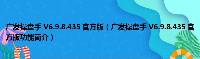 导读 大家好,关于广发操盘手 V6 9 8 435 官方版,广发操盘手 V6 9 8 435 官方版功能简介这个很多人还不知道,小勒来为大家解答以上的问题,现