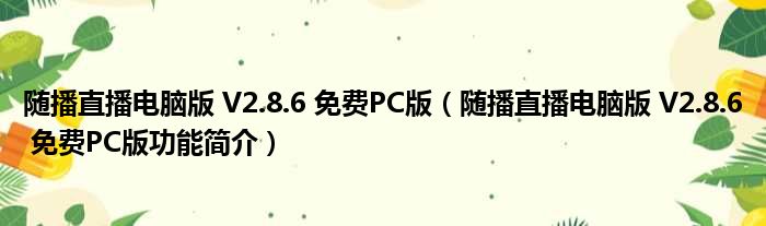 导读 大家好,关于随播直播电脑版 V2 8 6 免费PC版,随播直播电脑版 V2 8 6 免费PC版功能简介这个很多人还不知道,小勒来为大家解答以上的问题
