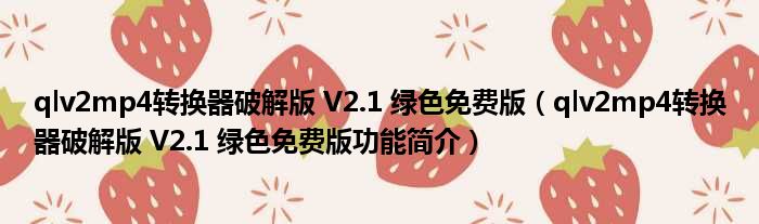 qlv2mp4转换器破解版 V2.1 绿色免费版(qlv2mp4转换器破解版 V2.1 绿色免费版功能简介)