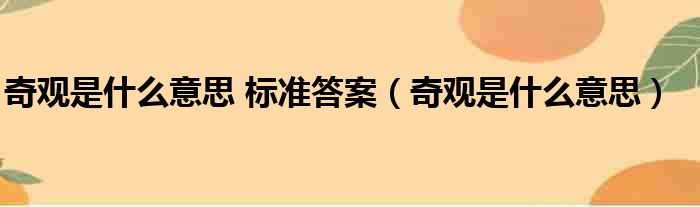 导读 大家好,今天小六子来为大家解答以下的问题,关于奇观是什么意思 标准答案,奇观是什么意思这个很多人还不知道,现在让我们一起来看看吧!1