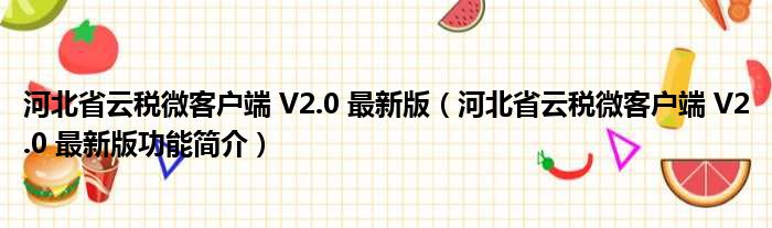 河北省云税微客户端 V2.0 最新版(河北省云税微客户端 V2.0 最新版功能简介)