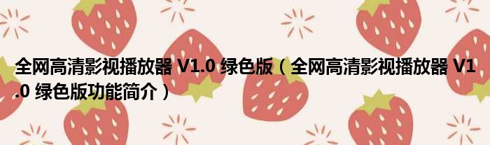 全网高清影视播放器 V1.0 绿色版(全网高清影视播放器 V1.0 绿色版功能简介)