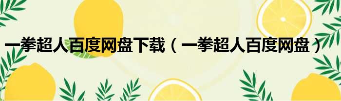 导读 大家好,今天小六子来为大家解答以下的问题,关于一拳超人百度网盘下载,一拳超人百度网盘这个很多人还不知道,现在让我们一起来看看吧!1、
