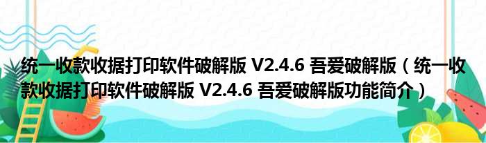 导读 大家好,关于统一收款收据打印软件破解版 V2 4 6 吾爱破解版,统一收款收据打印软件破解版 V2 4 6 吾爱破解版功能简介这个很多人还不知