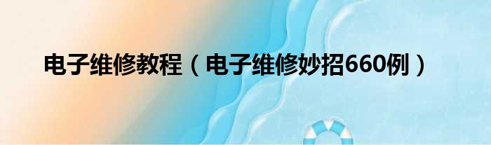 导读 大家好,今天小六子来为大家解答以下的问题,关于电子维修教程,电子维修妙招660例这个很多人还不知道,现在让我们一起来看看吧!1、电子维