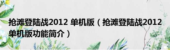 抢滩登陆战2012 单机版(抢滩登陆战2012 单机版功能简介)