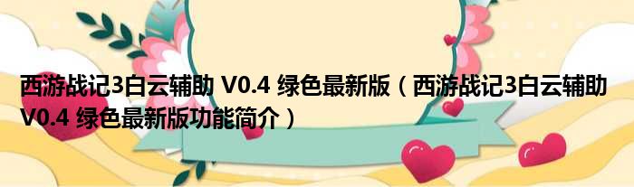 导读 大家好,关于西游战记3白云辅助 V0 4 绿色最新版,西游战记3白云辅助 V0 4 绿色最新版功能简介这个很多人还不知道,小勒来为大家解答以上
