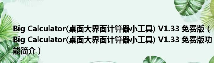 导读 大家好,关于Big Calculator(桌面大界面计算器小工具) V1 33 免费版,Big Calculator(桌面大界面计算器小工具) V1 33 免费版功能简介