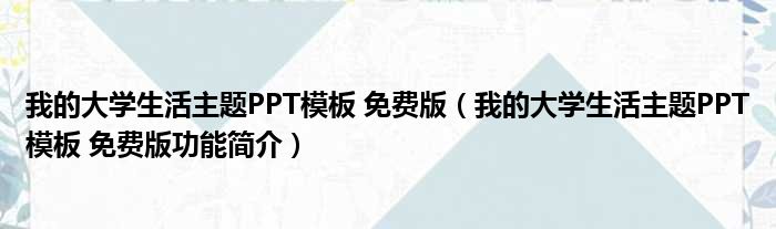我的大学生活主题PPT模板 免费版(我的大学生活主题PPT模板 免费版功能简介)