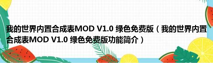 我的世界内置合成表MOD V1.0 绿色免费版(我的世界内置合成表MOD V1.0 绿色免费版功能简介)