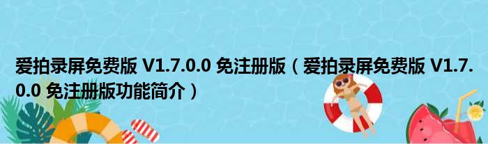 导读 大家好,关于爱拍录屏免费版 V1 7 0 0 免注册版,爱拍录屏免费版 V1 7 0 0 免注册版功能简介这个很多人还不知道,小勒来为大家解答以上的