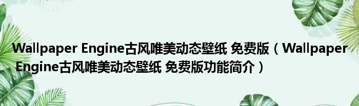 Wallpaper Engine古风唯美动态壁纸 免费版(Wallpaper Engine古风唯美动态壁纸 免费版功能简介)