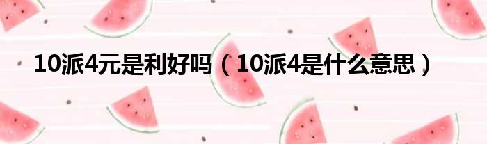 大家好,今天小六子来为大家解答以下的问题,关于10派4元是利好吗,10派4是什么意思这个很多人还不知道,现在让我们一起来看看吧!