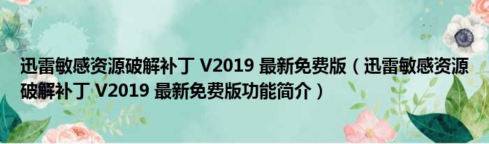 导读 大家好,关于迅雷敏感资源破解补丁 V2019 最新免费版,迅雷敏感资源破解补丁 V2019 最新免费版功能简介这个很多人还不知道,小勒来为大家