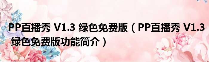 PP直播秀 V1.3 绿色免费版(PP直播秀 V1.3 绿色免费版功能简介)