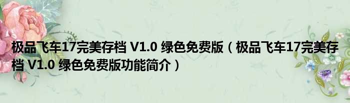 极品飞车17完美存档 V1.0 绿色免费版(极品飞车17完美存档 V1.0 绿色免费版功能简介)