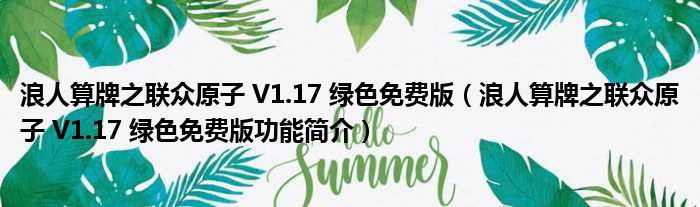 导读 大家好,关于浪人算牌之联众原子 V1 17 绿色免费版,浪人算牌之联众原子 V1 17 绿色免费版功能简介这个很多人还不知道,小勒来为大家解答