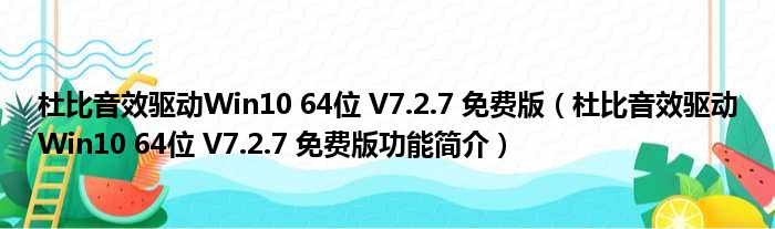 杜比音效驱动Win10 64位 V7.2.7 免费版(杜比音效驱动Win10 64位 V7.2.7 免费版功能简介)