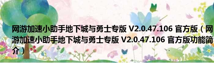 导读 大家好,关于网游加速小助手地下城与勇士专版 V2 0 47 106 官方版,网游加速小助手地下城与勇士专版 V2 0 47 106 官方版功能简介这个很