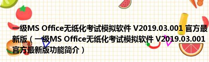 一级MS Office无纸化考试模拟软件 V2019.03.001 官方最新版(一级MS Office无纸化考试模拟软件 V2019.03.001 官方最新版功能简介)