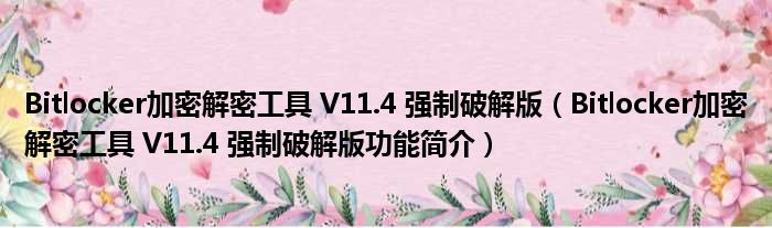 Bitlocker加密解密工具 V11.4 强制破解版(Bitlocker加密解密工具 V11.4 强制破解版功能简介)