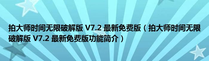 拍大师时间无限破解版 V7.2 最新免费版(拍大师时间无限破解版 V7.2 最新免费版功能简介)