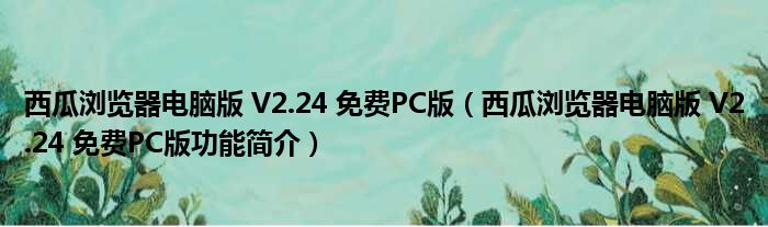 西瓜浏览器电脑版 V2.24 免费PC版(西瓜浏览器电脑版 V2.24 免费PC版功能简介)