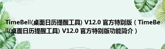 TimeBell(桌面日历提醒工具) V12.0 官方特别版(TimeBell(桌面日历提醒工具) V12.0 官方特别版功能简介)