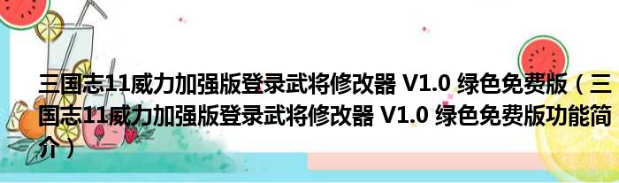 三国志11威力加强版登录武将修改器 V1.0 绿色免费版(三国志11威力加强版登录武将修改器 V1.0 绿色免费版功能简介)