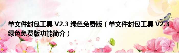 单文件封包工具 V2.3 绿色免费版(单文件封包工具 V2.3 绿色免费版功能简介)