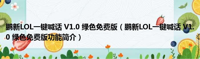 鹏新LOL一键喊话 V1.0 绿色免费版(鹏新LOL一键喊话 V1.0 绿色免费版功能简介)
