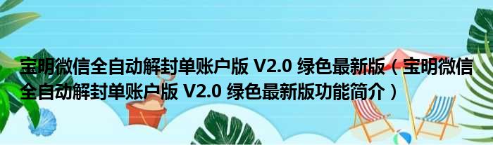 导读 大家好,关于宝明微信全自动解封单账户版 V2 0 绿色最新版,宝明微信全自动解封单账户版 V2 0 绿色最新版功能简介这个很多人还不知道,小