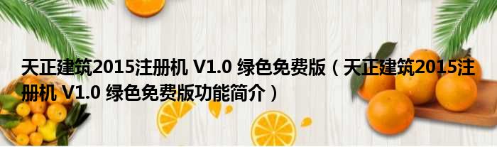 天正建筑2015注册机 V1.0 绿色免费版(天正建筑2015注册机 V1.0 绿色免费版功能简介)