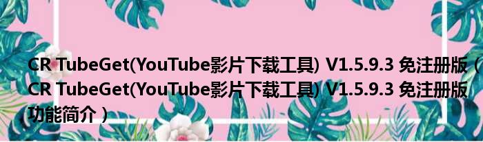 CR TubeGet(YouTube影片下载工具) V1.5.9.3 免注册版(CR TubeGet(YouTube影片下载工具) V1.5.9.3 免注册版功能简介)