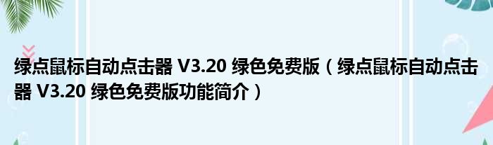 绿点鼠标自动点击器 V3.20 绿色免费版(绿点鼠标自动点击器 V3.20 绿色免费版功能简介)