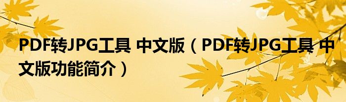 PDF转JPG工具 中文版(PDF转JPG工具 中文版功能简介)
