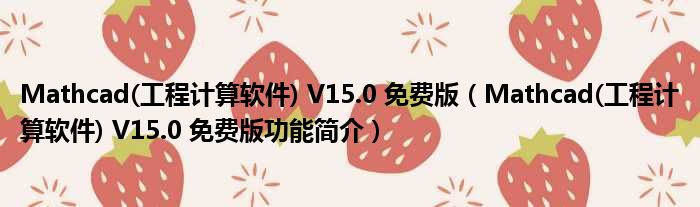 Mathcad(工程计算软件) V15.0 免费版(Mathcad(工程计算软件) V15.0 免费版功能简介)