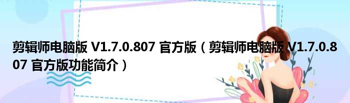 剪辑师电脑版 V1.7.0.807 官方版(剪辑师电脑版 V1.7.0.807 官方版功能简介)