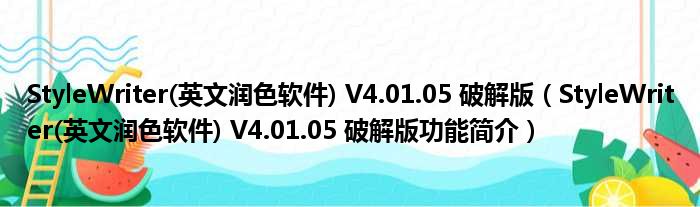 StyleWriter(英文润色软件) V4.01.05 破解版(StyleWriter(英文润色软件) V4.01.05 破解版功能简介)