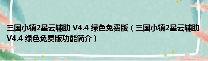 三国小镇2星云辅助 V4.4 绿色免费版(三国小镇2星云辅助 V4.4 绿色免费版功能简介)